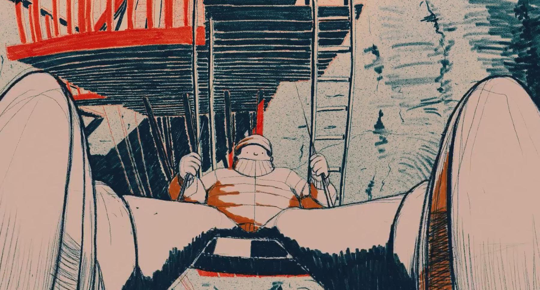 This award-winning animated short tells the story of a father and his son, who every day jump with a parachute from their vertiginous cold house, attached to a cliff, to go to the village on the ground, far away where they sell the ice they produce daily. Gonzalez, who also performed and composed the accompanying soundtrack, tells about the short: “Something that has always fascinated me about animation cinema is the freedom it offers us to create something from scratch. Surrealistic and bizarre scenarios and realities can be used as a metaphorical tool to talk about something that is common to us in our more ‘real’ reality”.
